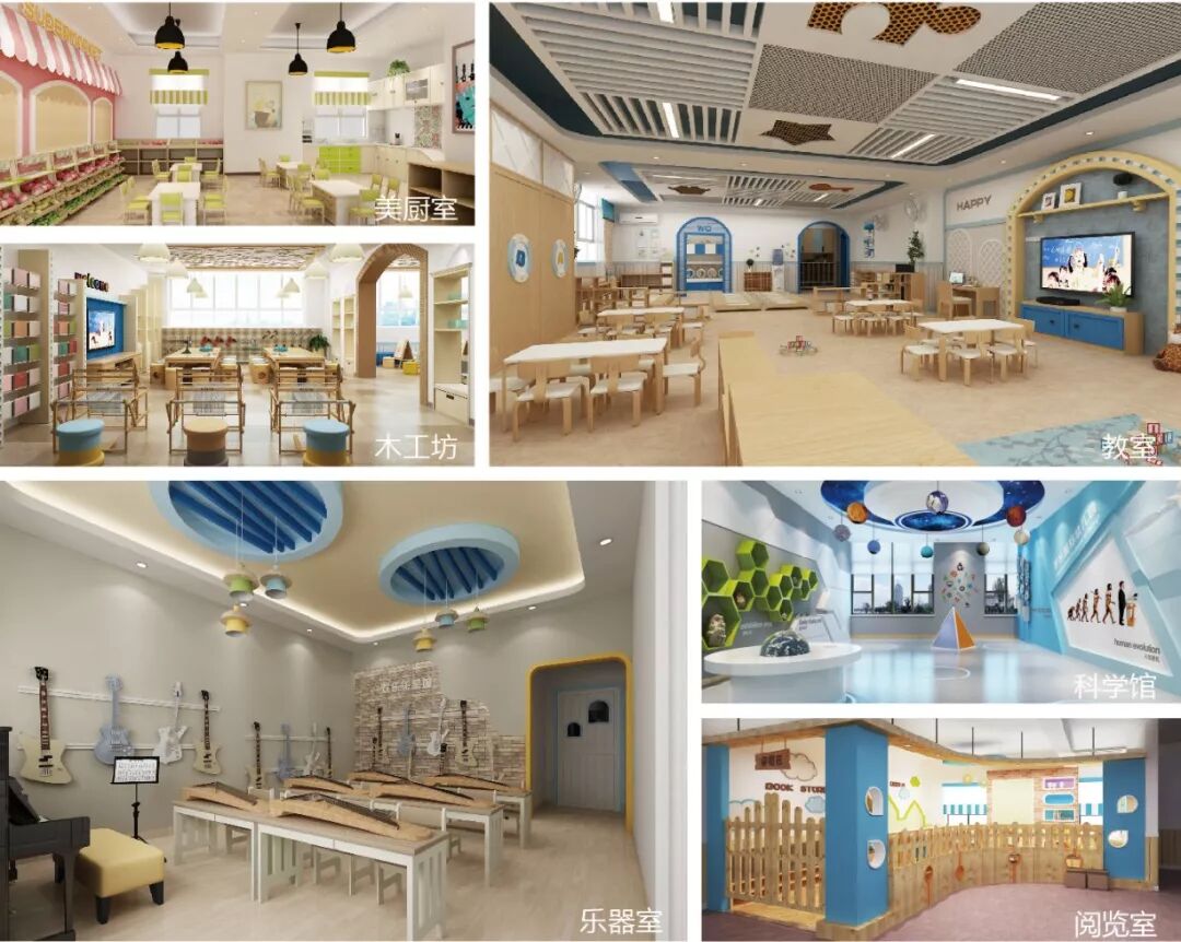 综合国外幼儿教育在孩子综合能力方面的培养,晨风幼儿园充分融合国学特色与双语主题优势,将“高审美、健体能、深探究、全语言、广社交”定义为培养孩子的首要目标。园所设有音体室、科学室、面工坊、美术室、绘本馆、国学馆、思维训练室、乐器室等9个功能科室,根据幼儿年龄特点及心理发展规律,为幼儿提供专业的特色课程。